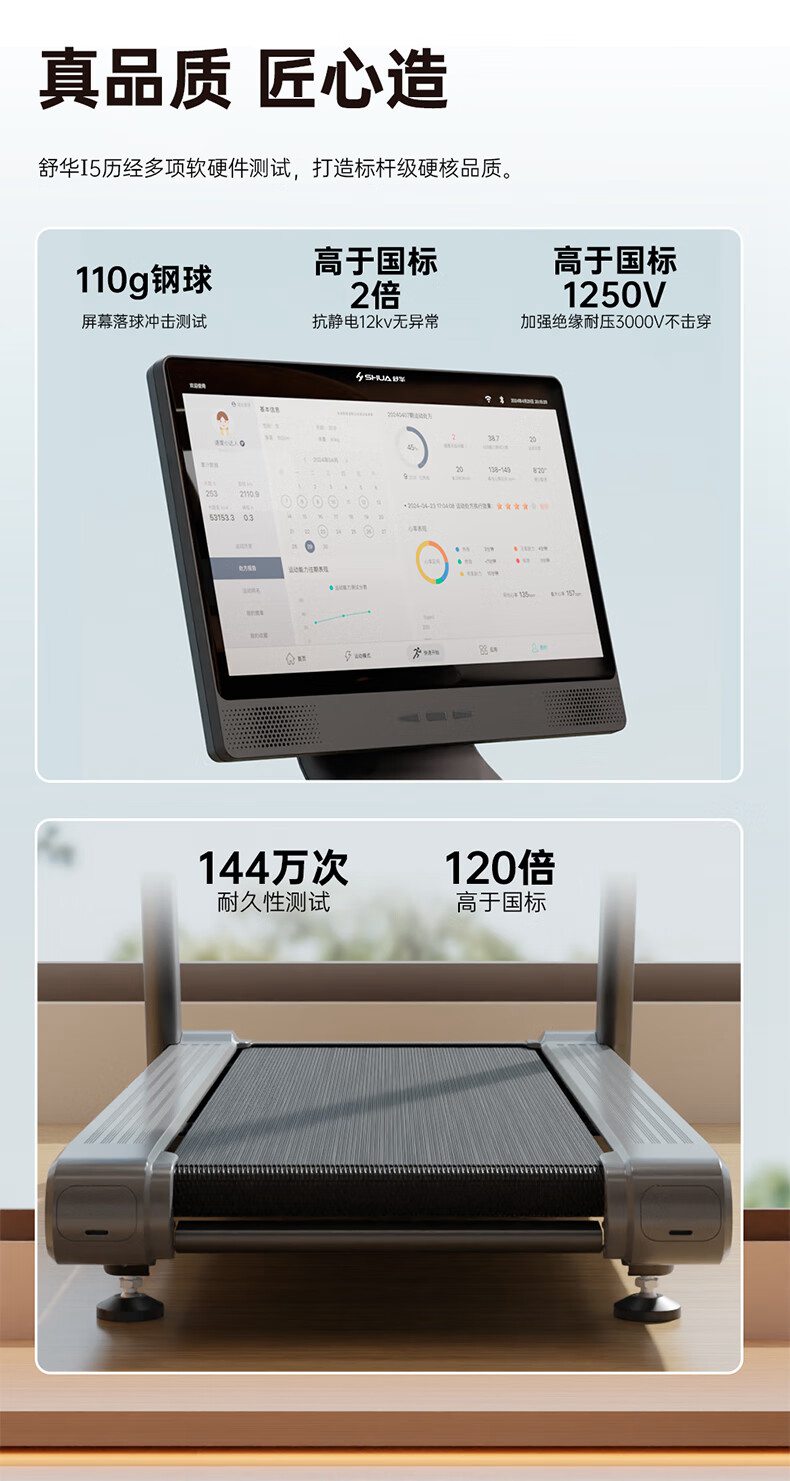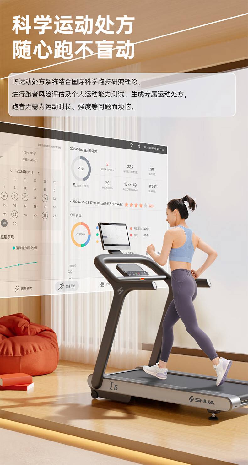 333SH-T580T I5跑步机,科学运动处方,随心跑不盲动,可根据个人运动处方心率区间及跑者的实时心率情况,自动调节速度或坡度,犹如你的专属“配速员”让你随“心”而跑无负担。