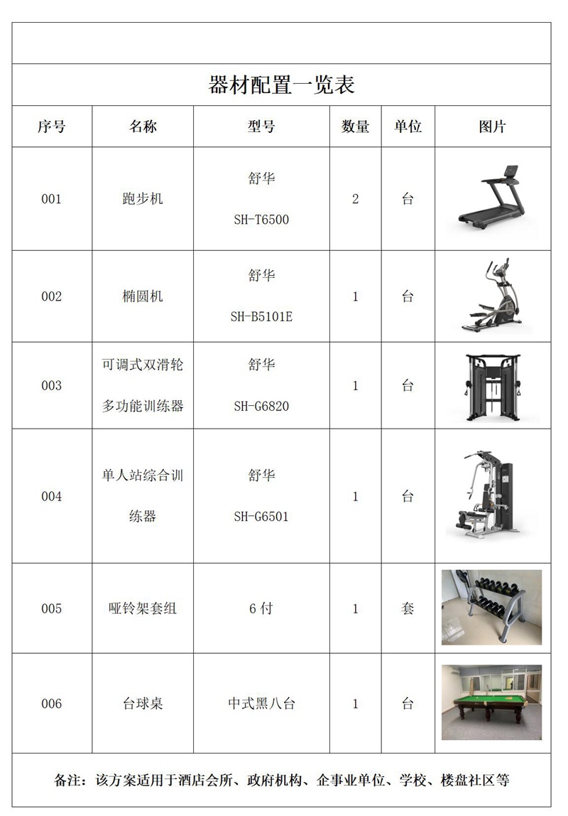 健身器材配置说明