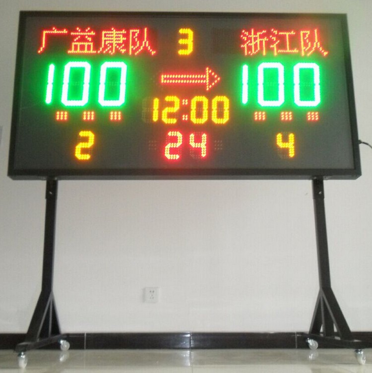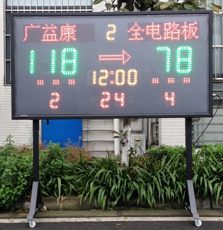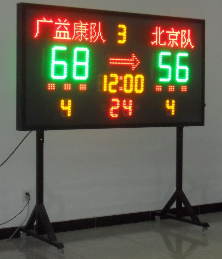 记分牌是根据篮球类比赛的特点精心设计,采用台湾生产的高亮度LED制作,寿命大于10万小时。具亮度高、可视性好、功耗小、使用寿命长等优点。