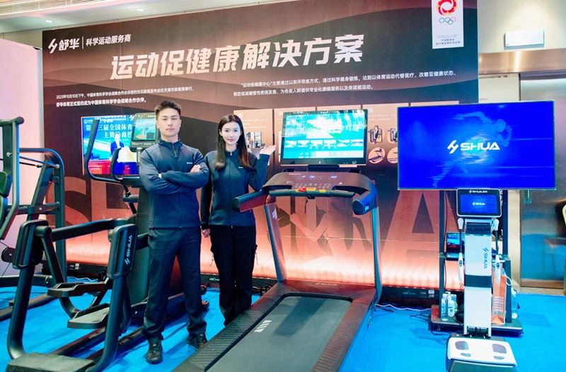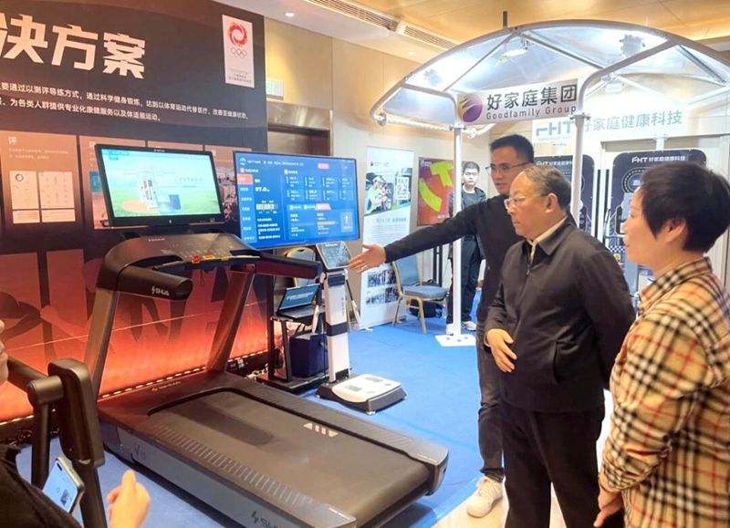 除智慧管理系统外,33368系列智能力量训练器、V10高端商用椭圆机、V10高端商用跑步机以及体测仪等优质产品也亮相在展示场景中,参会领导对333体育展示的产品和技术表示赞赏,认为其在推动全民健身事业发展方面做出了积极贡献,并对333品牌及综合实力表示认可。
