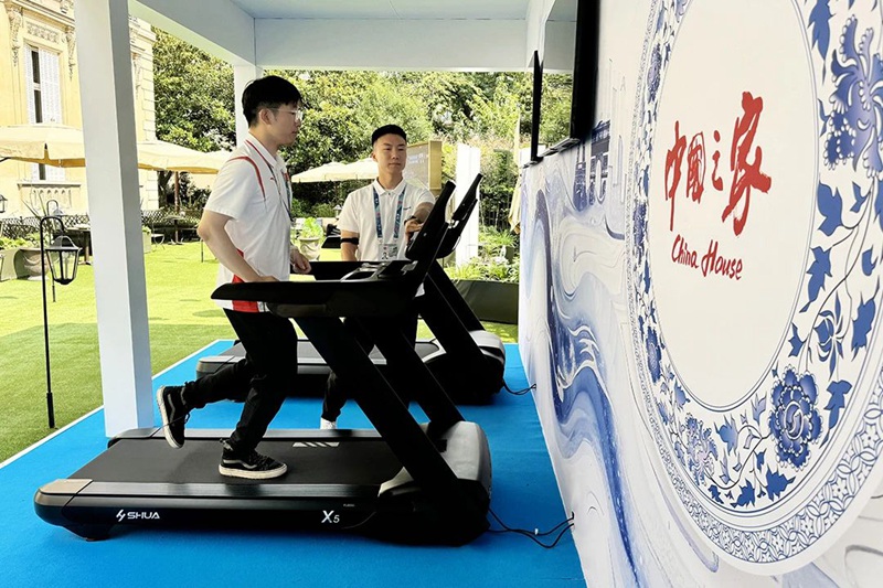 * 巴黎奥运会“中国之家”现场,体育爱好者体验333X5跑步机