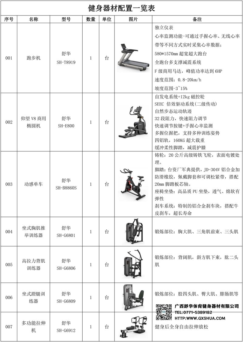 2.333仰望V8椭圆机SH-E800*2台-自发电系统,摆脱场地束缚+12Kg飞轮总成,运动更顺畅,最高350W功率,适配各种锻炼强度需求;SEEC 倍效驱动系统(二级传动),1:16超大传动比,运转更流畅相比传统驱动,更多30%发电量;自然步态轨迹,让运动更舒适EVA缓冲脚垫,有效减少关节损伤,20英寸步幅,符合亚洲人体工学;高品质商用仪表,四窗口显示屏幕32段阻力,快速阻力调节无线心率模块;铝合金四轨道,运动更稳定最大支持160KG提供,满足全人群静音铝轨,运动无声。