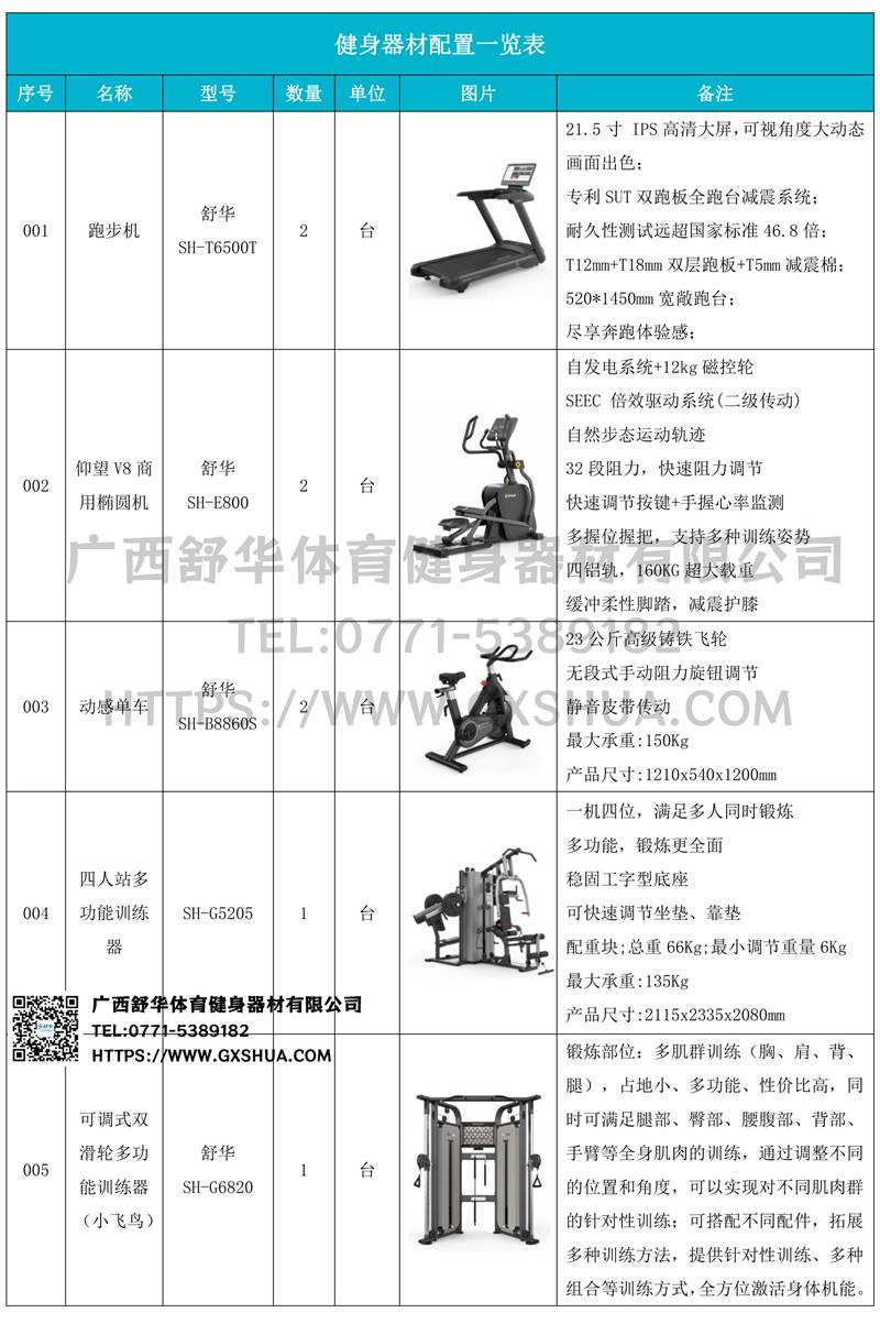 4.333四人站综合训练器SH-G5205*1台-主要训练功能:推胸、蝴蝶夹胸、哈克深蹲、双杠、高拉、勾脚、悬垂举腿、坐姿划船、蹬腿,一机四位多用途,减小占地面积的同时,可满足四个用户同时使用,而无需购买4台产品,大大的提升了产品的性价比及功能性,适用于是小型工作室、企事业健身房等。