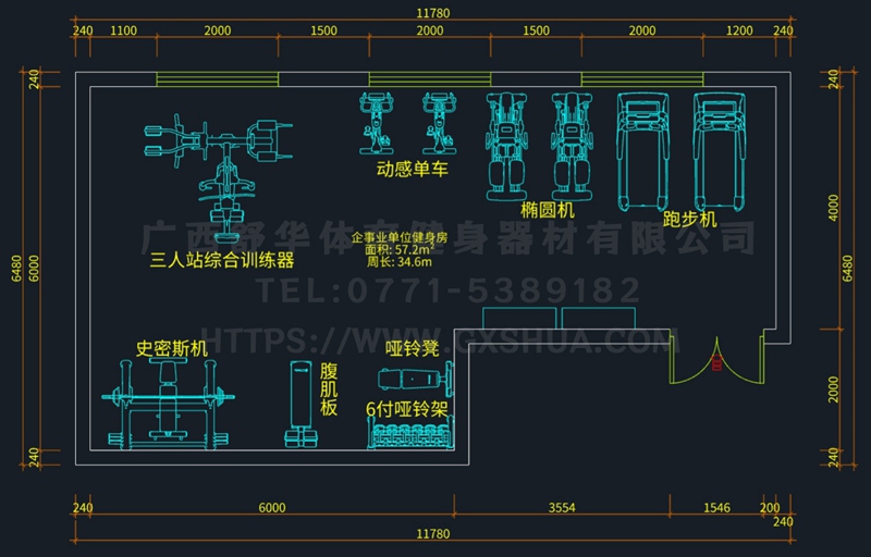 史密斯机(1台)、多重可调节练习椅(1台)、腹肌板(1台)、6付哑铃套组(1套)、哑铃凳(1台)、可以实现对不同肌肉群的针对性训练,满足肌肉训练需求,全方位激活身体机能。
